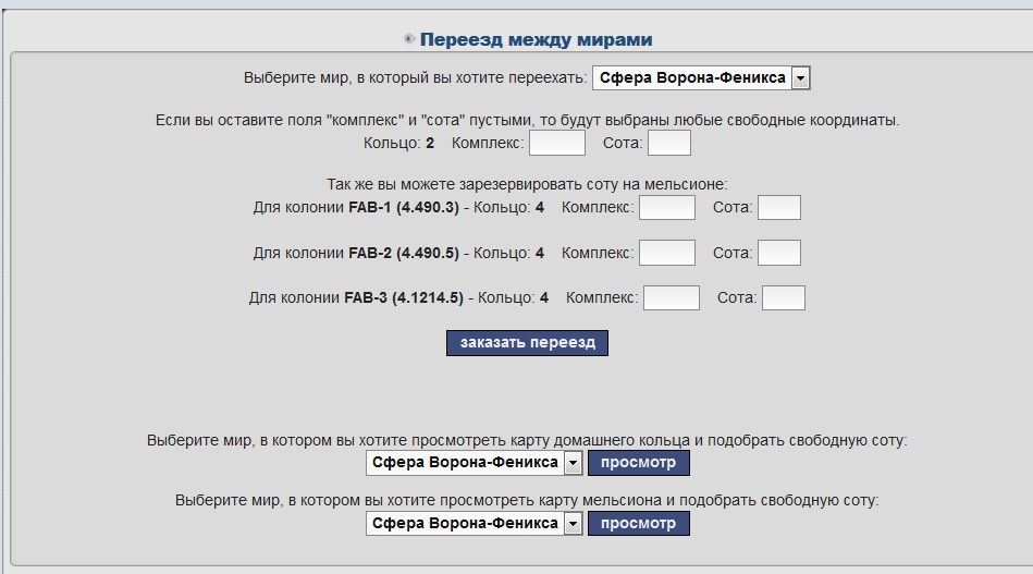 Переезд между серверами в Destiny Sphere - браузерная стратегия