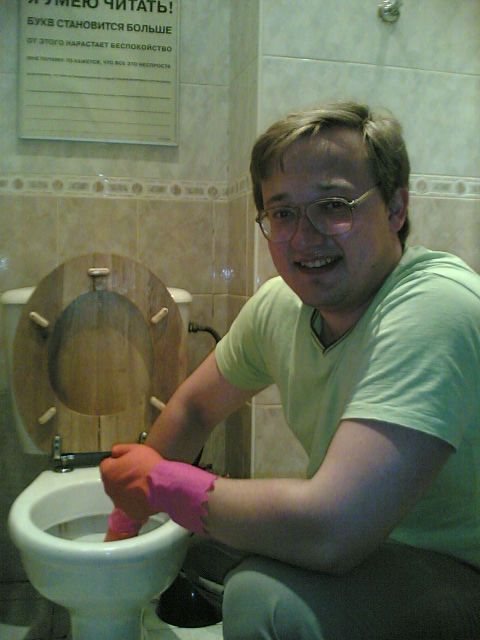 Итак, один из главных героев дня - тот кому досталась самая трудная и ответственная часть работы - чистка очка - главный Гуру проекта AntonFedchin: