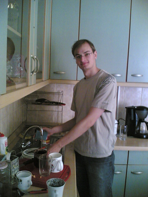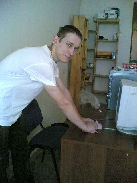 Stariy95, ему досталась кухня. И о счастие, оказалось что в офисе есть посудомойка, которую-то и не воспринимал никто за полезный предмет. Сразу  после фоторграфирования это и выяснилось. Stariy95 работает программистом. Да, как ни странно есть у нас и такая профессия в команде.