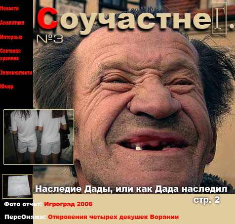 Пока шел набор к Главреду подошли какие-то странные люди в штатском, после 5 минутного разговора раздался грозный окрик секретарше - Почему не пиарится издание любимого нами Эридана ? Отчего интервью нашего соратника Кодеша не нашло место на обложке нашего ежегодника к дню "пророков всея отечества" ? Как посмели, Вы - попусту жующие орбит, который вам дала свобода, замолчать правду ? Было еще много хулительных слов, все забегали и срочно нашли старые линки к нетленкам (жамкать на картинки) :